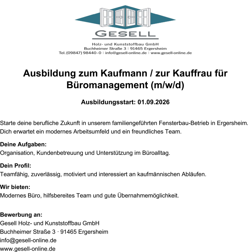 Lehr­stel­len für Indus­trie­me­cha­nik, Elek­tronik­für Betriebs­tech­nik,...Kaufmann/-frau für Büro­ma­nage­ment (m, w, d), Fach­kraft für Lager­lo­gis­tik... Nach oben scrollen